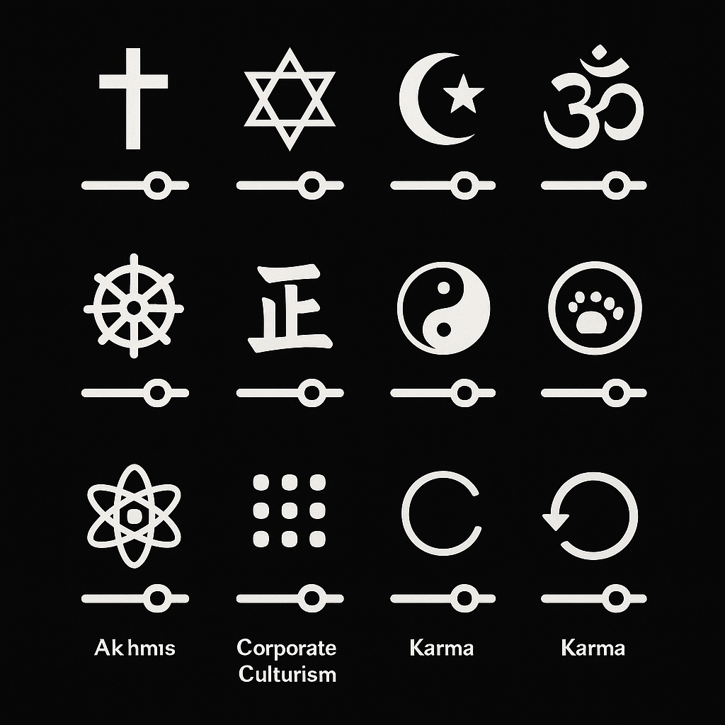 Karma isn’t punishment; it’s relational feedback. Every lean — toward compassion, control, fear, love — sends ripples. Sliders make karma visible. You see, in real time, how tuning one value reshapes your path.